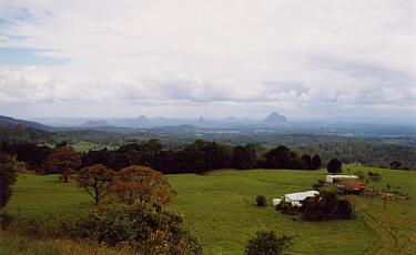 Bevor es nach Brisbane geht, wollen wir zu den "Glasy Mountains". Vorher fahren wir zum Mary Cairncross Park, von wo wir einen wunderbaren Blick auf die Mountains haben. Leider ist das Wetter weiterhin ziemlich schlecht, so dass wir froh sind überhaupt etwas zu sehen. |