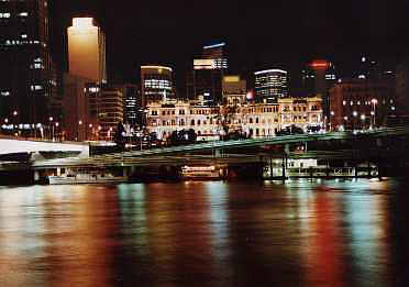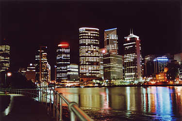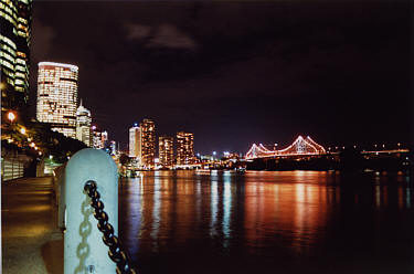 Im Glass House Nationalpark können wir wieder eine schöne Strecke über Schotter fahren, so dass wir froh sind ein Geländewagen zu haben. Mit einem normalen Mietwagen bestünde kein Versicherungsschutz auf Schotterpisten. Am Nachmittag fahren wir weiter Richtung Brisbane. Auf dem Weg dorthin halten wir noch in Caboolture, wo sich ein Historical Village (Fotos, Lage und Adresse) befindet. Hier ist ein altes Dorf mit über 50 Gebäuden historischer Bedeutung originalgetreu erhalten geblieben, so wie es früher mal ausgesehen hat. Mehr dazu... Am späten Nachmittag fahren wir weiter in die Hauptstadt Queenslands nach Brisbane, wo wir in der Dämmerung ankommen. Zunächst versuchen wir uns eine billige Unterkunft zu suchen, was sich in der drittgrößten Stadt Australiens gar nicht so einfach darstellt. In den Hotels und Motels, sowie in der Jugendherberge sind uns die Doppelzimmer zu teuer, so dass wir schließlich im Backpacker-Hotel landen. Für ein Doppelzimmer ohne alles bezahlen wir hier zwar immer noch $50, aber was günstigers haben wir wie gesagt nicht gesehen (siehe auch Unterkünfte). Nachdem wir eingecheckt haben schauen wir uns Brisbane noch ein wenig im Dunklen an. Gerade jetzt wirkt die Stadt besonders schön, wie die folgenden Fotos zeigen: |