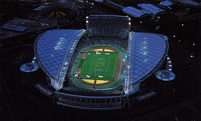 Heute haben wir mal wieder etwas länger geschlafen und kommen erst gegen Mittag im Olympiapark an. Wir müssen $3 Parkgebühr pro Std. im voraus bezahlen. Mit immensen Aufwand hat Sydney hier in Homebush einen heruntergekommen Stadtteil in einen grandiosen Olympiapark verwandelt. Ab dem 15. September 2000 wurden hier 10.000 Athleten aus 198 Nationen zu den 27. Sommerspielen erwartet. 250.000 internationale Besucher und Millionen sportversessene Aussies sollten hier ab 15. September die ersten Spiele mit Öko-Siegel erleben. Wir sind also entsprechend gespannt und fangen beim Besuch des Olympiageländes mit dem Olympiastadion an, durch welches wir eine geführte Tour für $18 (Studententarif, sonst $24) unternehmen, wobei wir interessante Einzelheiten über das Stadion erfahren. 120.000 Leute passen hier rein - mehr als in allen anderen Olympiastadien zuvor. Nach den Spielen wird das Stadion jedoch auf 80.000 Sitzplätze zurückgebaut. Der Kunststoff-Boden der Lauffläche im Stadion ist einen Zentimeter dick und luftgefedert. Die blaue Sitzplätze wirken nach Studie beruhigender. Das Regenwasser vom Dach wird gesammelt und für die Besprenkelung des Rasens, sowie für Toilettenspülung genutzt. Um so viele Menschen so schnell wie möglich ins Stadion an ihre Plätze zu bekommen wurden an jeder Ecke Auffahrten im Parkhaus-Stil gebaut. Autos für den Service können hier auch fahren. Wir sehen uns die Kabinen für TV u. Radio Stationen an. In der VIP-Lounge, die man auch mit Fahrstuhl und Rolltreppe erreichen kann, erzählt man uns das man 600 Platin-Mitglieder für das Stadion gewinnen konnte. Diese erhalten für $35.000 Aktienanteile einen eigenen Parkplatz und kostenlosen Eintritt für 2 Personen zu allen Veranstaltungen in den nächsten 30 Jahren, Olympia eingeschlossen.