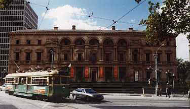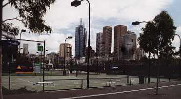 Am heutigen Karfreitag steht Melbourne, die zweitgrößte Stadt Australien und touristische Hauptattraktion Viktorias, auf unserem Reiseverlaufsplan. Leider ist - wohl wegen des Feiertags - heute nirgends in der Stadt besonders viel los. Auf dem Hinweg kommen wir am Port Melbourne und dem Albert Park vorbei. Wir fahren weiter und besuchen als erstes das Olympiagelände von 1956. Die Anlagen sind entsprechend alt und bei weitem nicht so beeindruckend wie der neue Olympiapark in Sydney. Auch den in der Nähe befindlichen Flinders Tennispark, wo alljährlich die Australien Open stattfinden schauen wir uns näher an. Wie schon erwähnt ist hier nirgendwo was los, so dass wir sogar kostenlos parken können. Auf den Tenniscourts hätte man auch spielen können. (Link-Tipp: 40 (!!) Positionen in der Innenstadt von Melbourne laufend aktualisiert zur Auswahl: Super Rundumsicht!; mehr Live-Bilder; mehr Live-Bilder; CitySearch Virtual Tour, mit 360° Bildern von Melbourne, folgende Plugins werden benötigt: Flash, Shockwave und IPix)