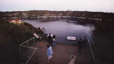 Weiterfahrt nach Mt. Gambier mit dem Kratersee Blue Lake. Es wird dunkel. Aufgrund schlechter Beschilderung und mangelnder Karten setzen wir unsere Fahrt nahe der Grenze zwischen Victoria und Südaustralien Richtung Norden nach Adelaide fort. Eigentlich wollten wir weiter an der Küste fahren, aber im Dunkeln ist das eh egal. In Naracoorte fahren wir wieder Richtung Küste nach Kingston. Leider scheint es hier nirgends etwas zu essen zu geben, so beschließen wir den nächst größeren Ort Robe anzufahren. Hier ist die "Hölle" los: Alles voll von Touristen. Was zu essen bekommen wir hier auch nicht: nach 20.00 Uhr sind die Küchen dicht. Dafür kommen wir genau richtig zum Osterfeuerwerk. Es wird am Strand abgebrannt und ist wirklich gut. Wir fragen in einigen Motels - aber überall das gleiche "no vacancy". Also fahren wir die 40 km zurück nach Kingston und verzichten aufs Abendessen. In Kingston kommen wir wieder in einem Doppelzimmer im Stadt-Hotel unter, also einer großen Kneipe mit Zimmern. Am anderen morgen gibt es wieder ein sehr reichhaltiges Frühstück. |