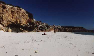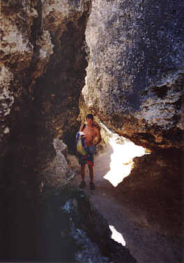 (über Schotter). Durch eine enge Felsenschlucht gelangen wir hier zum Strand,