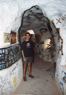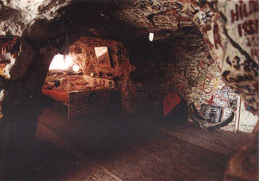 Fortan verhalten wir uns leise und sehen uns das Sammelsurium an Inventar an. Die Wohnung im Berg ist verrückt eingerichtet und dekoriert. Neben seiner Wohnung hat Harry bereits weitere Räume in den Felsen gesprengt. Hier wurden auch Szenen des Films "Mad Max 3" gedreht. Glaubt man Harrys Erzählungen, so diente er dem Flimhelden "Crocodile Dundee" als Vorbild und hat während der "Mad Max" Dreharabeiten in seiner farbenfrohen Höhle mit Tina Turner geflirtet. |
