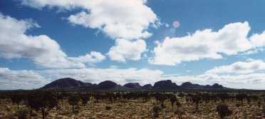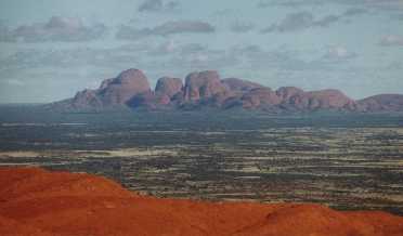 Blick auf die Kata Tjuta (Olgas) vom Ayers Rock aus* Die Olgas aus der Sicht des Ayers Rock*