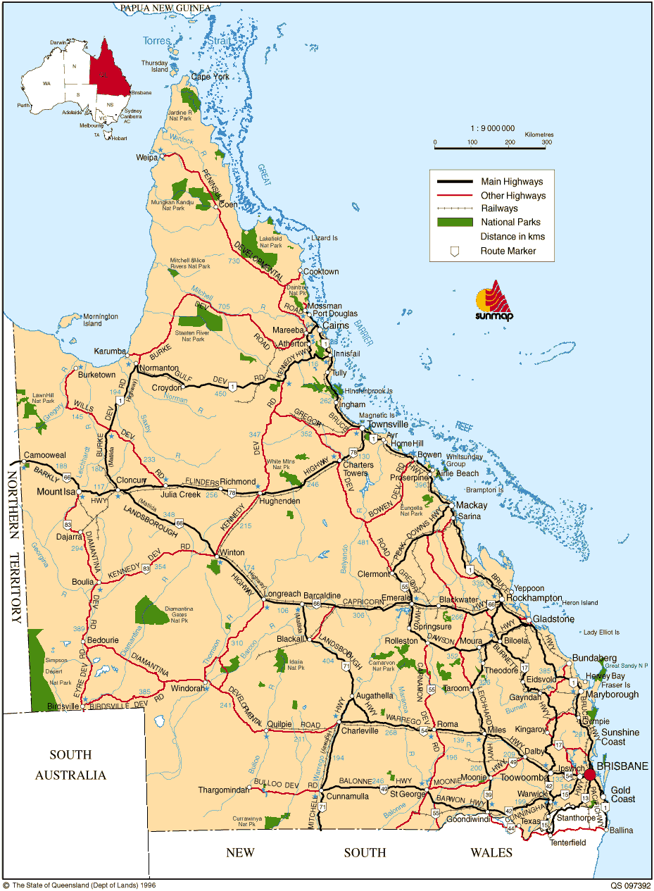 Angekommen in der nördlichsten Stadt Queenslands in Cairns wird man am Flughafen mit Hinweisschildern daraufhingewiesen, dass auch geringe Mengen Lebensmittel zu hohen Strafen führen können, falls man diese nicht deklariert. Einige Koffer werden tatsächlich mit der Hilfe eines Spürhundes untersucht. Der Flughafen in Cairns ist sehr klein und überschaubar. Leider hat meine gewählte Mietwagengesellschaft (siehe auch Mietwagen) keinen Sitz im Flughafen, so dass ich ein Taxi nehme. Für $ 6,20 komme ich gut 10 Min. später bei Britz an, und muss mir zu meiner Enttäuschung sagen lassen, dass der erst für morgen reservierte Wagen noch nicht zur Verfügung steht. (Ich muss dazu sagen, dass ich den Wagen natürlich schon ab Reisebüro für heute den 31.3. mieten wollte, dies ging aber nicht, da der Sommerkatalog erst ab 1.4. beginnt!) Jetzt weiß ich nicht recht was ich tun soll. Ich entschiede mich per Telefon günstige Hostels aus meinem Reiseführer anzurufen. Beim dritten Hostel (Hostel Bellview, Single für $30, Bild siehe unten; siehe auch Unterkünfte) habe ich Glück und buche ein Single-Raum für heute. Zu Fuß laufe ich mit "Sack und Pack" zu meiner Unterkunft. Wider Erwarten ist es doch etwas weiter, so dass ich fast eine Stunde unterwegs bin. Das "Single" (Einzelzimmer) kostet $ 30. Leider ist nur ein Ventilator vorhanden, der es kaum schafft der großen Schwüle herzuwerden. Trotzdem bin ich froh nach über 40 Std. endlich aus meinen Klamotten rauszukommen. Der Sprung in den Hostel eigenen Pool bringt zu Mindest vorübergehende Abkühlung. Nach der Dusche schaue ich mich ein wenig in der 68.000 Einwohner Stadt Cairns um. Auf dem Weg zum Hostel hatte ich schon fast die ganze Uferpromenade "Esplande" gesehen, und muss sagen dass ich einen guten Standort mit dem Hostel in direkter Nähe zum Pier gefunden habe. Hier findet in vielen kleinen Läden, Einkaufszentren, Kneipen und Restaurants das Leben statt. Leider gibt es keinen Sandstrand, dafür aber ein Wattenmeer, wo man bei Ebbe zahlreiche Kleinstlebewesen in Aktion sehen kann. |