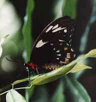 Letzte Station ist Kuranda. Hier habe ich ca. 5 Std. Aufenthalt. Entlang der Coondoo Street, der Hauptstraße von Kuranda laden zahlreiche kleine Galerien, Arts and Crafts Shops, sowie hübsche Cafés und Gartenrestaurants zum Verweilen ein. (Kuranda Übersichtskarte / Straßenplan, 180 kB) Um nicht nur bummeln zu müssen, besuche ich auch das Butterfly Sanctuary am Rob Veivers Drive. Für $ 10,50 bekommt man hier auf engem Raum 200 verschiedene Schmetterlingsarten vorgestellt. Manche von ihnen sind beeindruckend groß und sehr bunt. Es wird erklärt, wie aufwendig es ist ständig so viele Schmetterlinge lebendig zeigen zu können. Des weiteren wird verraten, wie sich Schmetterlinge von Motten unterscheiden, wie listig sie sich gegen Feinde verteidigen und wie alt sie werden. Zum Schluss werden noch tote präparierte Falter aus aller Welt in Schaukästen präsentiert. (Link: Kuranda Cultural Rainforest Villages)