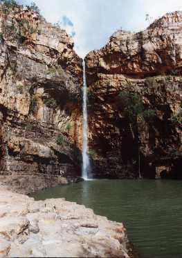 Nachmittags fahren wir noch zu den Edith Falls. Auf dem Weg sehen wir Brandrodungen. Die Falls sind sehr klein, aber toller Pool. Den eigentlichen Fall (60 m) verpassen wir, aufgrund einsetzender Dunkelheit. Abends fahren wir an Pine Creek vorbei über den alten Stuart Highway nach Douglas, wo wir im Douglas Daly Park in einer Cabin mit nur zwei Betten unterkommen (ich schlafe auf unseren Iso-Matten auf dem Boden). An der Rezeption erfahren wir, dass die Douglas Hot Springs (konst. 60 Grad) leider geschlossen sind. Man empfiehlt uns stattdessen "The Arches and the Waterhole", welche nur zwei Kilometer (4WD Strecke) entfernt liegen. (Link zum Thema: Garry & Maria's "Our Territory") |