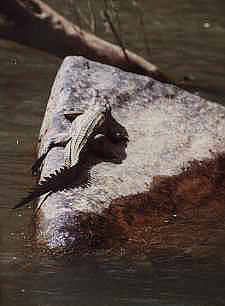 unterwegs sehen wir ein ungefährliches Süßwasserkrokodil |
