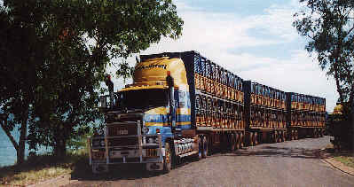 an der Esplanade von Darwin mit Vieh beladener Roadrain am Hafen*